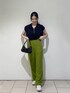 【Tops】 接触冷感素材の夏ニット🌻フレンチスリーブが気になる二の腕をカバーしてくれます♡ショート丈のトップスなので、ハイウエストのボトムスと相性抜群です◎ 【Pants】 柔らかく軽い履き心地のパンツです👏🏻パンツと同じ素材のベルトが付いており、ベルトはバックルもしっかりしているので高見えです✨ワイドパンツですがベルトでウエストをしっかり強調できるのがおすすめポイントです💕