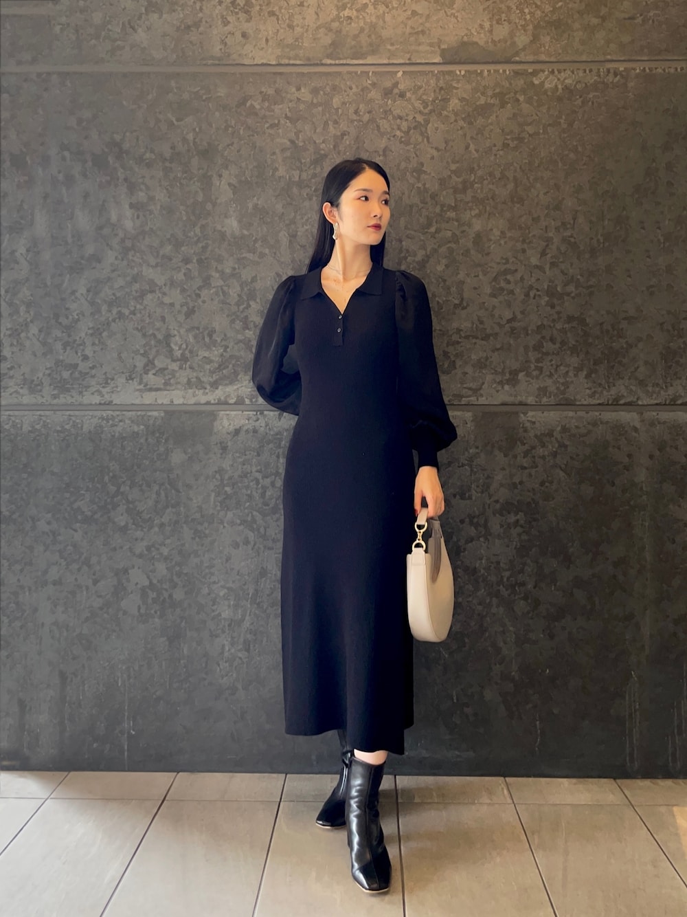 【Dress】 1枚で可愛いのにゆるっと楽ちんなニットワンピース。 首元はスキッパーデザインなので、スッと首が長く見え、アクセサリー映えもします✨ 程よい厚みなので春先まで着られるのも◎ アウターを着ても着膨れしにくいのも個人的に嬉しいポイントです🤍