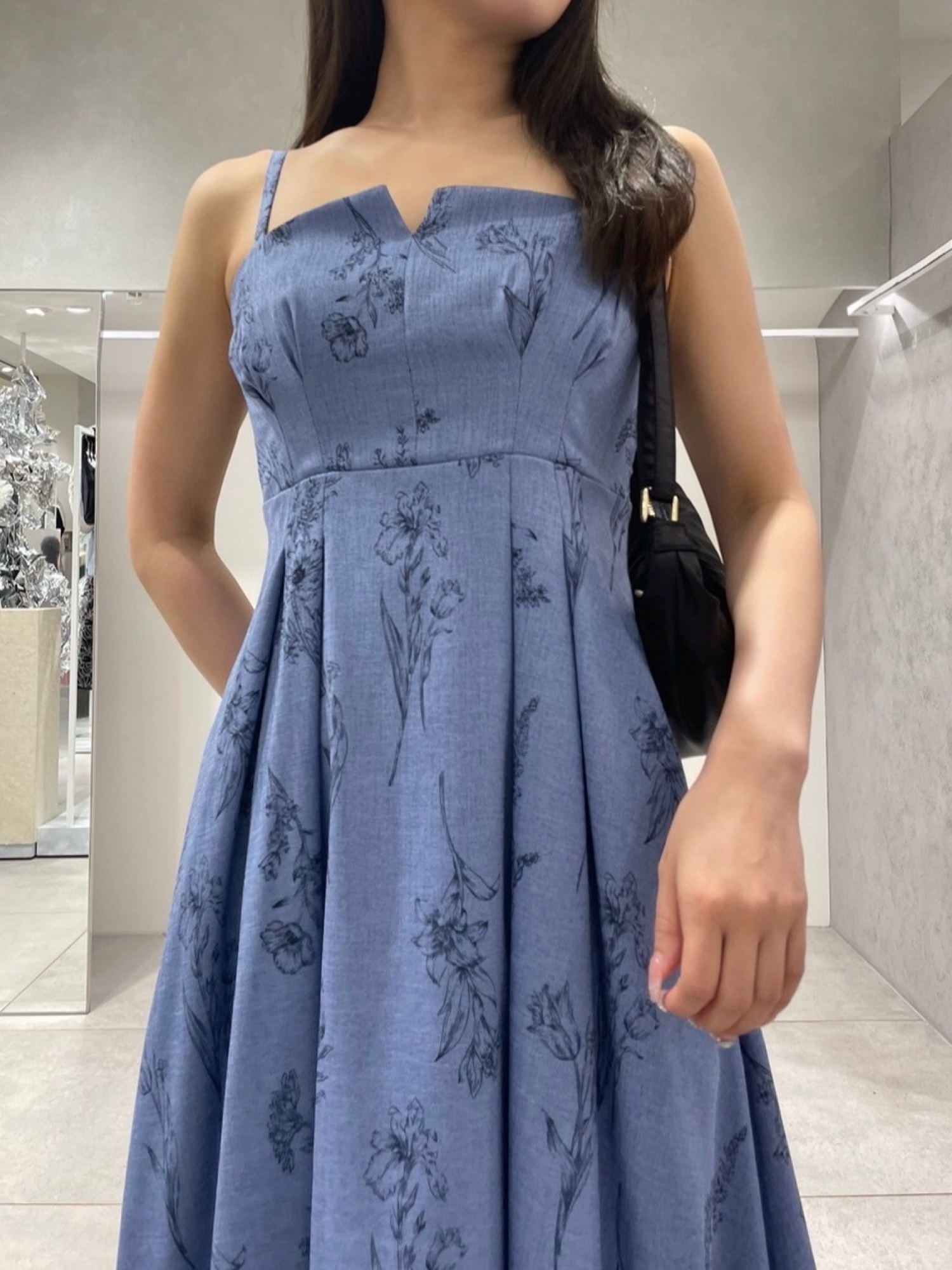 Blue🫐×Black🖤 dress:リネン素材のキャミワンピースにBlueが新登場😚✨ コルセットみたいにウエストがキュッとして見えて、バックレースアップがポイントの一枚で主役級アイテムです❣️ 生地はちょっと硬めでスカートも広がりすぎないお作り。意外と暑くなくて、この夏あまり着ないカラーもいっぱい楽しめちゃいそうです🥰 shoes:今年のトレンドのビッグリボンモチーフサンダル🎀 実はリボンが取り外し可能です🤭 スクエアトゥだから可愛すぎなくて綺麗めコーデにもばっちりハマっちゃいます❣️ 可愛いはもちろんカジュアルも綺麗めも行けちゃうサンダルって最強すぎませんか😤❣️ bag:上品な光沢感があるサテン生地のハーフムーンバッグ🌙 中にもポケットがついてて長財布など沢山入ります❣️ ハンドルの長さ調節可能でデイリー使いにぜひ取り入れて見てください❣️