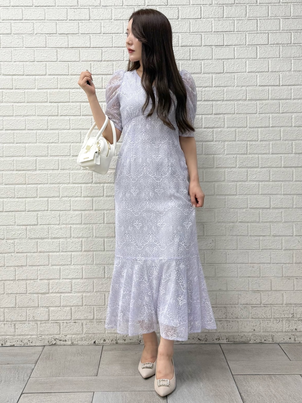 dress:M 158センチでSだとふくらはぎ中間くらいの長さです。 ウエストも高く見えて脚長効果◎ プライベートでも着られるらくちんワンピース shoes:36 ビジューが取り外し◎ ラメが入ってるので足元にポイントを置くコーデにも使える❣️