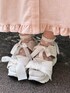 merry jenny定番のくまさんワンピ🧸 くまさんのデザインが新しくなりました〜〜!うつむき加減なくまさんがかわいい🎀 ベストのようなつけ襟は花柄でりぼんがたくさん!とってもガーリーなデザインで、りぼんでサイズ調整もできるので優秀アイテム◎コーデのプラスに🫶🏻 サンダルはりぼんが大きく2つ乗ったスポーツサンダルで歩きやすさも抜群!グリッターがソール部分にあるので丈の長いボトムスでも足元が華やかになります☁️22.5cmでSサイズ着用しております!