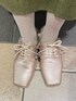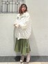 ジャケットはおしりまですっぽりのオーバーサイズ!ふわふわ〜〜なシルエットですが風も通さずあったかいです♡裾をしぼるとぽふっと丸いシルエットになるのでおすすめ🎀 中に着ているニットトップスはフード付き!ニットでフードはありそうでなかったデザイン✨首元ひもがたらんとたれているのでりぼんに結んでも垂らしても◎ スカートはトレンドのミディ丈!152cmで足首しっかり見える丈感なので靴下で遊ぶこともできます♡ウエストはゴムでラクチン◎ シューズはりぼんがたくさんついたローファーでスクエアトゥなので程よくガーリーに♡22.5cmでMサイズ着用です!