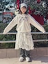 アウターは今あるアイテムの中でいちばんあったか〜〜!中綿たっぷりのあったかさ&りぼんがランダムについたデザインでどんな方にもおすすめできます✨ ねこちゃんスウェットはジャストなサイズ感でレイヤードもしやすいゆったりなシルエットになっています 🐈⬛ エプロンはコーデのポイントに!何か物足りないな〜〜ってときにこれをつけるだけで一気に垢抜けます✨ デニムはストレートな形のシンプルなデニムパンツですが、膝上にりぼんがたくさんなのでガーリーな印象に🎀152cmで2回折って履くとぴったりです! merry jennyのビーニーはカジュアルとガーリーを兼ね備えたデザイン!色も優しいお色味でお洋服に馴染みやすいです☁️ シューズは【peichan.】コラボアイテム!やわらかい履き心地で疲れにくいです!22.5cmでMサイズ着用です🧸