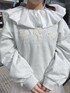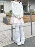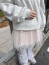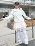 スウェットはひつじさんが3匹並んだアイキャッチーなデザイン。おしりにかかるくらいのオーバーサイズなので私は裾を1回内側に折って着用しています! ブラウスは襟がバルーンで唯一無二のデザイン。レイヤードしやすいジャストなサイズ感です! ミニワンピはチュールがたっぷり!丈感、ウエスト調節機能があるので身長体系問わず着用◎インナー次第で年中ご利用いただけます♡ レースパンツはりぼんがついた新しいデザイン!152cmで5cmほどソールのあるシューズだと引きずらずに着用できます!膝まではタイトなデザインなのでレイヤードにぴったり♡ スニーカーは【peichan.】コラボアイテム!シューレースは2種類ついてくるので気分に合わせて着用可能です!22.5cmでMサイズ着用です!