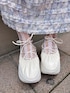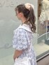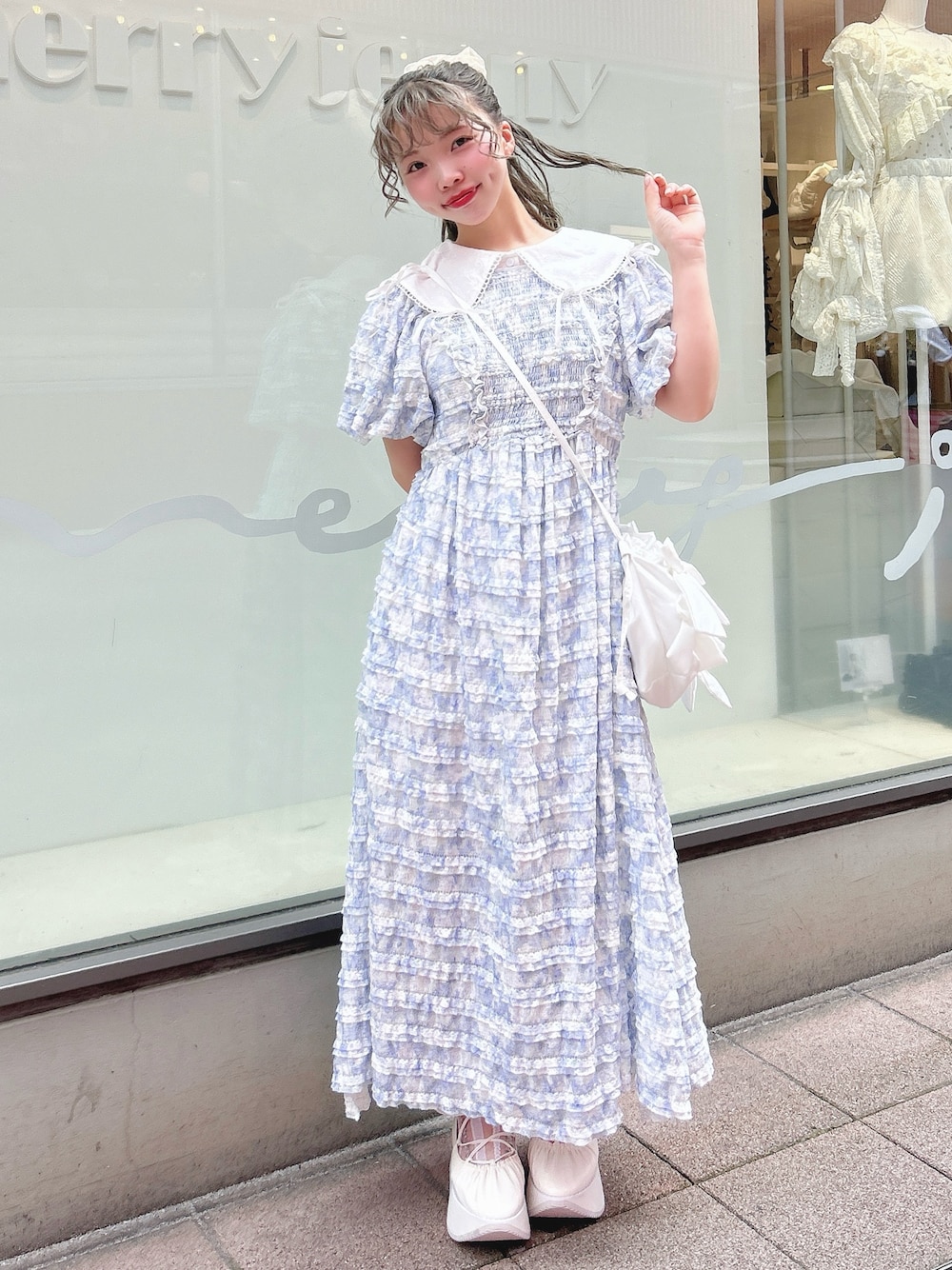 ワンピースは胸元がシャーリングのゴムになっていて着心地ラクチン◎お袖も長めのパフスリーブでゴムの締め付け感も無いのでゆったり着用できます♡ ブラウスは襟にりぼんがデザインされたとってもガーリーな1枚。ピコレースに通されたりぼんは取り外し可能なので少し甘さを落ち着かせての着用も◎ バッグは500mlのペットボトルも入る見た目以上の大容量バッグ。中にはポケットもあるので小物の管理も◎ シューズはレースアップできる紐がついた船底シューズ。22.5cmでMサイズ着用です♡