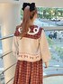 ワンピースは襟が大きいので小顔効果◎152cmでひきずらない丈感です♡ カーディガンはタイトなシルエットで華奢見え✨前を閉めてニットトップスとしても、開けて羽織としても◎ ブーツは後ろにリボンがたくさんついていて、足の甲の部分にもりぼんの刺繍があるのでどこから見てもかわいいデザイン♡22.5cmでMサイズ着用です♡