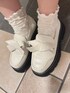 ワンピースは素肌で着てもちくちくしにくいやわらかいもちもちニットワンピで、152cmでもひきずらない安心の丈感です♡ シューズは幅狭めの厚底ローファーで、ソールが黒なので汚れが気になりにくいです♡22.5cmでMサイズ着用です!