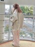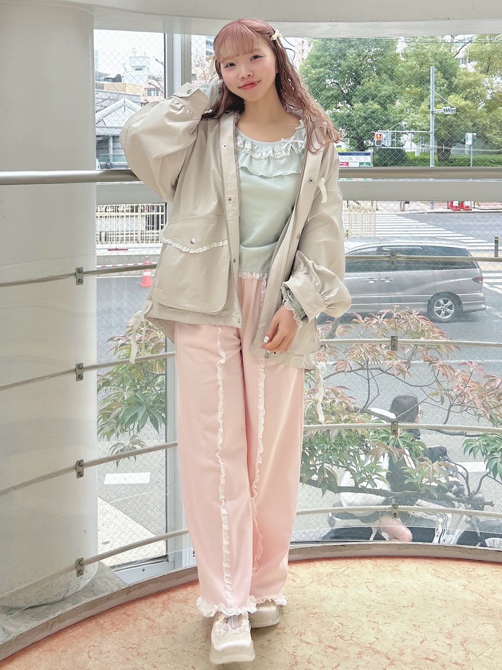 ワンピースはスクエアネックでお顔周りもすっきり!152cmでぺたんこシューズでもひきずらないくらいの安心の丈感です♡ トップスはぴたっとシルエットの大人っぽさと襟ぐりのフリルの甘さのバランスが絶妙なデザイン。裾にレースがついているのでボトムインしないでの着用がおすすめ♡ スウェットパンツは内側の紐でウエストを絞れるのでラクチンな履き心地。152cmでウエストを1回折ると引きずらずに着用できました! シューズは上側のフリルバンドがゴムになっているのでラクチンな履き心地♡22.5cmでMサイズ着用です!