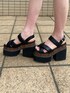 【outer】今年も大人気のジレです! 両サイドのベルトをしぼることで程よくウエストをスッキリ見せてくれます❤︎ インナーをキャミや長袖でも着回しできるので長い期間着ていただけます◎ 【skirt】ジレとセットアップで着用できるミニスカートです!ハイウエストで付属のベルトも太めなのでスタイルアップ抜群です❤︎ 中にインナーパンツも入っているので安心して履いて頂けます◎ 【tops】配色がとっても可愛いたんくです! タイトめな作りで縦ラインのストライプなので、華奢見え効果抜群です❤︎ 生地感が柔らかく薄目なので、首のつまりも気にせず着て頂けます◎ 【shoes】 クッション素材のストラップがポイントの厚底サンダルです! ソールがウッド調になっており、ブラックでも重い印象になりません❤︎ プラットフォームもしっかり高めなので足も疲れにくく、楽に盛れちゃいます◎