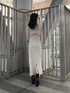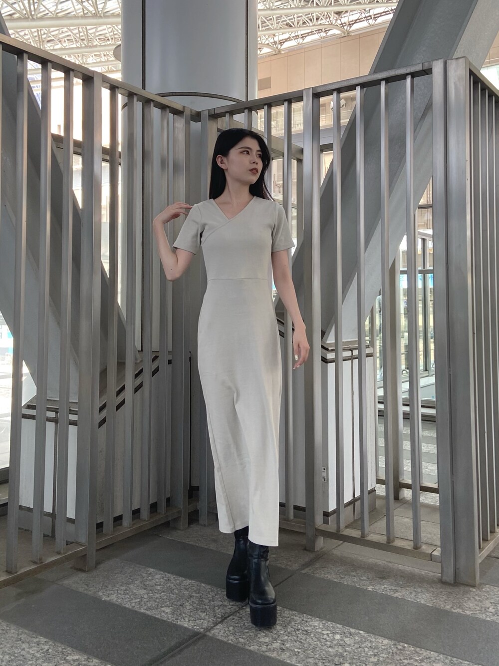 【onepiece】今年トレンドのカットデザインワンピースです!背中の高めの位置にカットデザインがあるので、腰位置高く脚長効果抜群です◎ピタッとタイトなお作りですが、伸縮性のあるニット生地と後ろのゴムのおかげでとっても楽ちんに着て頂けます◎首元のアシメデザインと足元のスリットで程よい肌見せもポイントです❤︎ 【shoes】店頭でも実際に履いているブーツです!プラットフォームがヒールとほぼ変わらない高さなので、ヒール特有の疲れもなく安定感抜群です!レザー生地なので履いていくうちにもっと馴染んできます◎