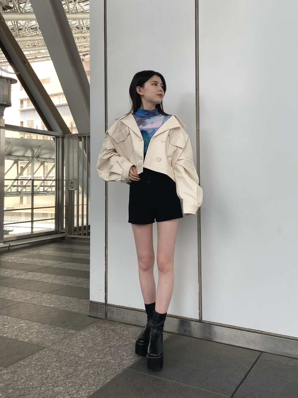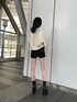 【jacket】とっても軽くて毎年大人気のレザージャケットです!ショート丈なので羽織るだけで脚長効果があり、着られてる感も出にくく高身長から低身長の方でも綺麗に着て頂けます❤︎お袖が広めの作りなので、厚めのニットやスウェットの上からでも羽織れて長い期間使えます◎ 【tops】モード感溢れるシアートップスです!ジャケットやジャンスカなどのインナーとして着ても差し色になってとても可愛いです❤︎ 【pants】去年も大人気だったニットキュロットです!ハイウエストに履けて、ショート丈なので脚長効果抜群です❤︎Tシャツに合わせたり、インナーパンツとしても使えるので、かなり着回しがききます◎ 【shoes】店頭でも実際に履いているブーツです!プラットフォームがヒールとほぼ変わらない高さなので、ヒール特有の疲れもなく安定感抜群です!レザー生地なので履いていくうちにもっと馴染んできます◎