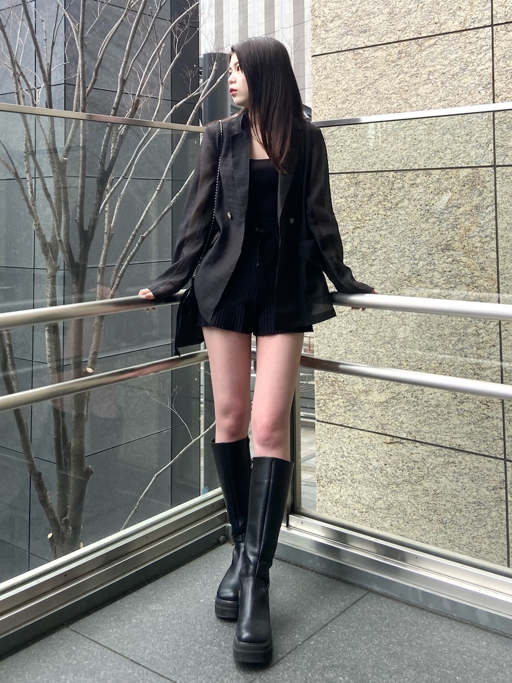 松本明日香(MURUA)のテーラードジャケット「シアーテーラードジャケット」を使ったコーディネート