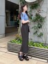 【tops】デコルテのカットデザインが可愛いニットトップスです!カットデザイン部分にツイストがかかっているのもポイントです❤︎ピタッとタイトめですが伸縮性があるのでとっても着やすいです◎ 【skirt】履くとモデルになれちゃうタイトスカートです!とにかくラインが綺麗で、しっかり目の生地感なので美シルエットを保ってくれます◎後ろはゴムになっており、ベルト付きなのでウエスト細見え効果も抜群です❤︎