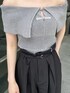 【tops】MURUAと言えばのチャイナデザインが可愛いオフショルニットです!ピタッとタイトめですが、腕はゆるっと隠れてくれるのでメリハリがあり、華奢見え効果抜群です❤︎ 【pants】ビスチェとセットアップ着用可能のワイドパンツです!ゆるっとしたシルエットでとても楽ちんです◎ナローベルトなのでウエスト細身の方もピッタリで履いて頂けます❤︎