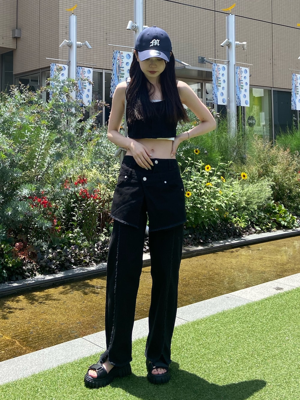 松本明日香(MURUA)のデニムパンツ「【SET UP対応】スカートレイヤードデニム」を使ったコーディネート