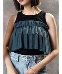【tops】オシャレ見え抜群のチュールトップスです!タンクトップとチュールは取り外し可能で、単体使いも◎チュールは斜めにしたり、腰に落としたりなど自由自在に着回しできます❤︎ 【skirt】大人気のジップスカート!生地はシャカっとした質感ですが、シワはつきずらく、スリットやプリーツデザインで女性らしさも出してくれます❤︎右サイドのジップを上げるとプリーツ、左足のジップを上げると中にミニスカートが入っておりラップスカート風になります◎ 【shoes】キラキラメタリック素材が可愛いミュールです!底にぷにっとクッション性があるので足も疲れにくいです◎アクセサリー感覚で履けてオシャレ見え間違いなしです❤︎
