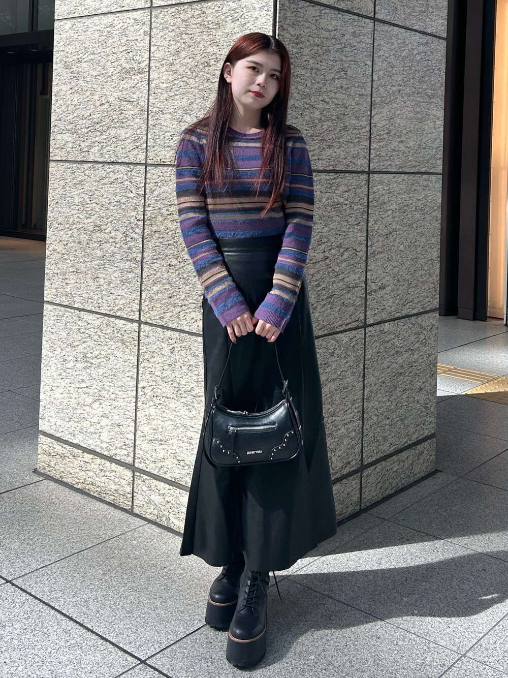 【tops】配色が可愛いニットです!シャギー素材がミックスされていて、ムルーアらしいデザインが目を引きます❤︎ピタッとなりすぎず程よくタイトなシルエットで華奢見えしてくれます◎ 【skirt】秋冬に欠かせないレザー素材!マーメイドシルエットなので、レザーですが綺麗めな印象にしてくれます❤︎後ろがゴムなのでとても楽ちんで履きやすいです◎ 【shoes】店頭でも実際履いているレースアップブーツです!傾斜がないので8時間立ち仕事でも全然疲れないです◎見た目以上に軽くて、ソールにボリューム感があるのでコーデのバランスも取りやすいです◎ 普段23~23.5を履いていて、こちらは23.5でちょうど良かったです!