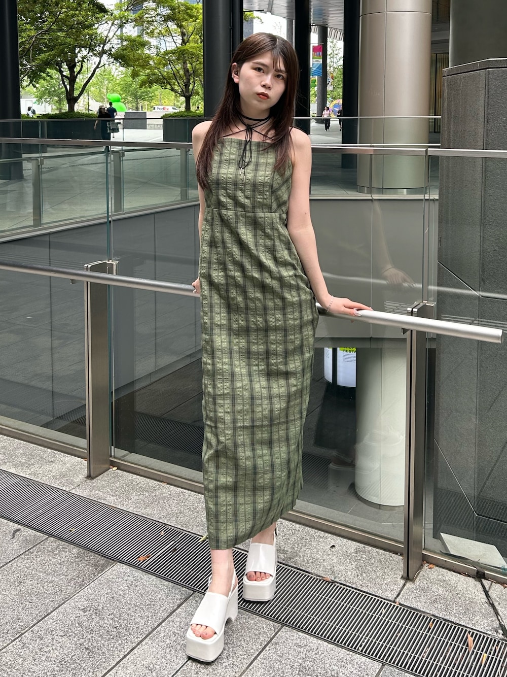 松本明日香(MURUA)のワンピース「【WEB限定】2WAYチェックキャミワンピース」を使ったコーディネート