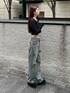 【tops】スタッフ人気も高いトップスです!ワンポイントでシンプルなので、何にでも合わせやすく、ピタッとタイトめなので華奢見え効果抜群です❤︎ 【pants】ダメージ加工が可愛いデニムです!生地がデニムでありながら柔らかく、ワイドシルエットなのでとても楽ちんです!161cmSサイズで、ハイウエストで履くとくるぶし下位の丈感です! 【shoes】実際に店頭でも履いている厚底ブーツです!とにかく見た目以上に軽く、立ち仕事でも私は全く疲れないです❤︎スウェード素材で禿げたりもしずらいので、劣化もしずらいです。普段23.5cmを履いており、こちらも23.5cmでぴったりです!