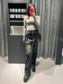 トップスはリブの生地でピタッとフィット感のシルエットで着ていただけます❤︎ 肩の部分が凄く華奢見えして上半身細く見せてくれます!! 首元のリボンはボタンで取り外しが出来るので、外してシンプルにも使って頂けます! ボトムスはスカートがレイヤーになったフレアデニムで、ウエストボタンは1つになっています! ハイウエストですが、ハイウエストすぎない丁度いいジャストなウエストでお作りしています! スカートはトップスにもなり、外してシンプルなフレアデニムとしても使えるので1つ持っておくと3wayで使って頂けます! 普段XSサイズでSサイズ着用で丁度良かったです。 シューズは人気の厚底ブーツで、普段24.5cmでLサイズで丁度いいです!