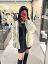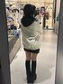 帽子はモコモコのファー素材なパイロットキャップ❤︎どんなコーデにも合います! 中のインナーは逆開ジップのフード付きパーカーでお袖元ゆったりなので中にも更に着込めます!これ1枚でも可愛らしく着れるので1枚持っておくと便利です! お羽織は袖がクシュクシュとギャザーになったボンバージャケットで、パーカーを着込めるくらいゆとりがあります! お靴は今大大大人気のフレアに広がった膝下ブーツで、脚圧素材を使っているので足が物凄く細見えします! 高さがあるのに傾斜感が少ないのでとっても歩きやすく、足に疲労感が出ないようにお作りしてます! 普段24.5cm着用でLサイズでピッタリです✨