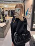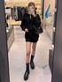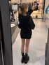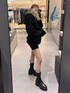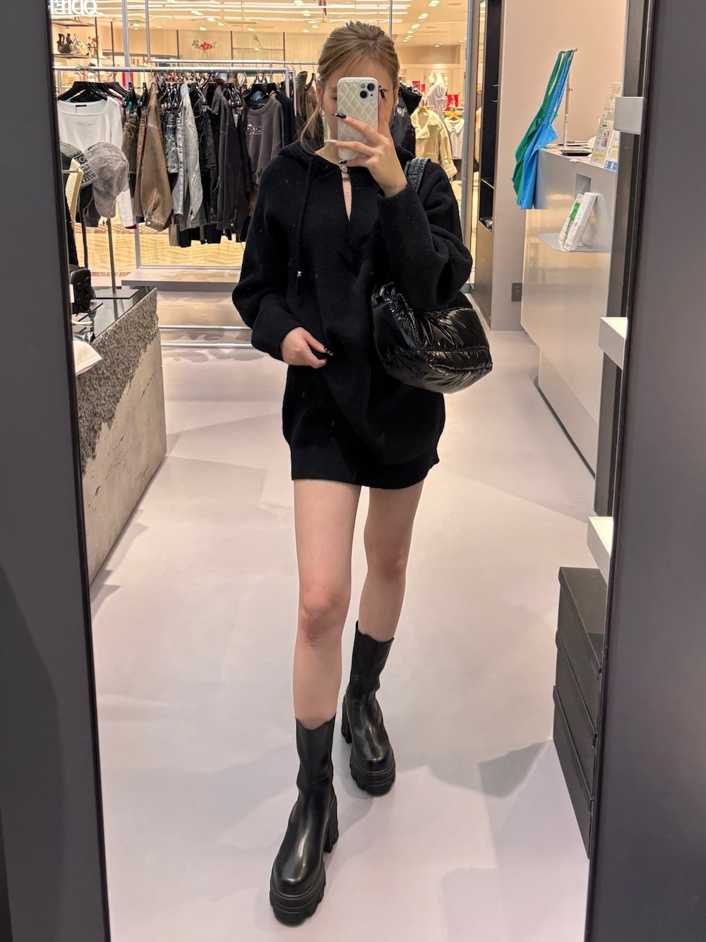 パーカーのようなシルエットのトップスですが生地はニット素材で柔らかいです! 丈感がお尻をすっぽりカバーしてくれる丈なので1枚で着るととっても可愛いです♡ フード付きで今っぽく着ていただけます! バックはエナメル素材で存在感抜群!沢山入ります♡ シューズは少しヒールがあるサイドがゴアになった形!普段24.5cm着用でLサイズでピッタリでした!