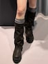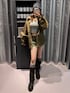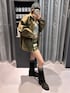 ニットキャップはスタッツが付いていてシンプル過ぎずに使えます♡ インナーもニットキャップと似ているデザインのスタッツが付いたトップスで合わせて着ると統一感抜群!首周りがスクエアに空いているのでこれ単体出来ても小顔効果◎です! ジャケットはデニム素材のヴィンテージ加工✨私は1番珍しいブラウンを選びました! 色味が本当に可愛くてオシャレで、イエローブラウンのような色味です! シルエット感もバッチリ!お尻がしっかり隠れる丈感です! スカートはセットアップ着用ができるものです!スカートにはダメージ加工も入っていて更にオシャレ見え!セットできたらさらに映えます!タイトで少し短めのスカートですが、見えても安心なインナーショーツがしっかりめで入っているので安心です! ブーツは今とってもトレンドのレッグウォーマー風なフレアのブーツです! マジックブーツでインソールしっかり入っているのでさりげなく盛れます♡ 私は靴下も合わせてルーズっぽく更に可愛くしました! 普段24.5cm着用でLサイズでピッタリです!