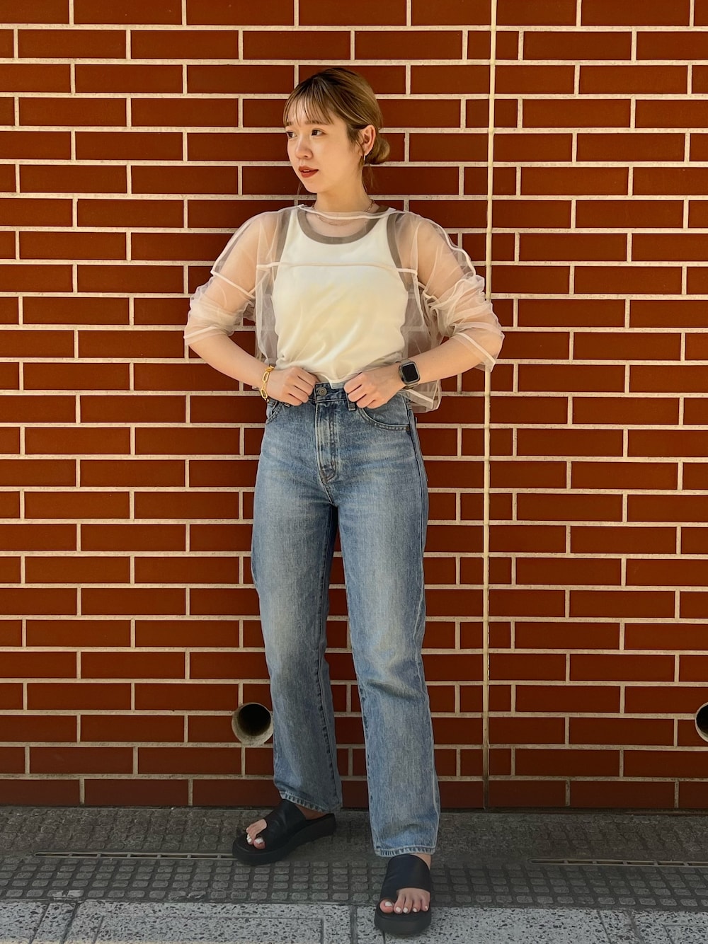 骨格ウェーブさん優勝コーデ🌞🌿 tops:ショート丈のチュールトップスなので 脚長効果もあります◎ 透け感のあるトップスを重ねることで タンクトップに+αでオシャレ見せできます! inner:しっかりとタイトな着心地のタンクトップなので安心感があります! デコルテも綺麗に出してくれるので 首元にアクセを持ってくるとより抜け感が出ます✨ bottom:小柄さんでも履きこなせる 最強デニムです! フラットのサンダルで足の甲を見せるシューズを合わせるのがオススメ😳 アクセも輪っかが大きめのため 手首が細見え🥰🩵