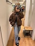 カジュアル気分な時のオススメコーデ🖤 outer:フェイクレザーブルゾンのブラウンを着用しております♡ サイズ感はルーズなのに、コンパクトな見え感のアウターです! アームが広くニットやパーカーなどもすっぽり入ります◎ 肩周りの切り返しや、裾野リブなど 細かいところまでデザインが施されているので 高級感もあり、カジュアルにも着れる万能なアウターです!