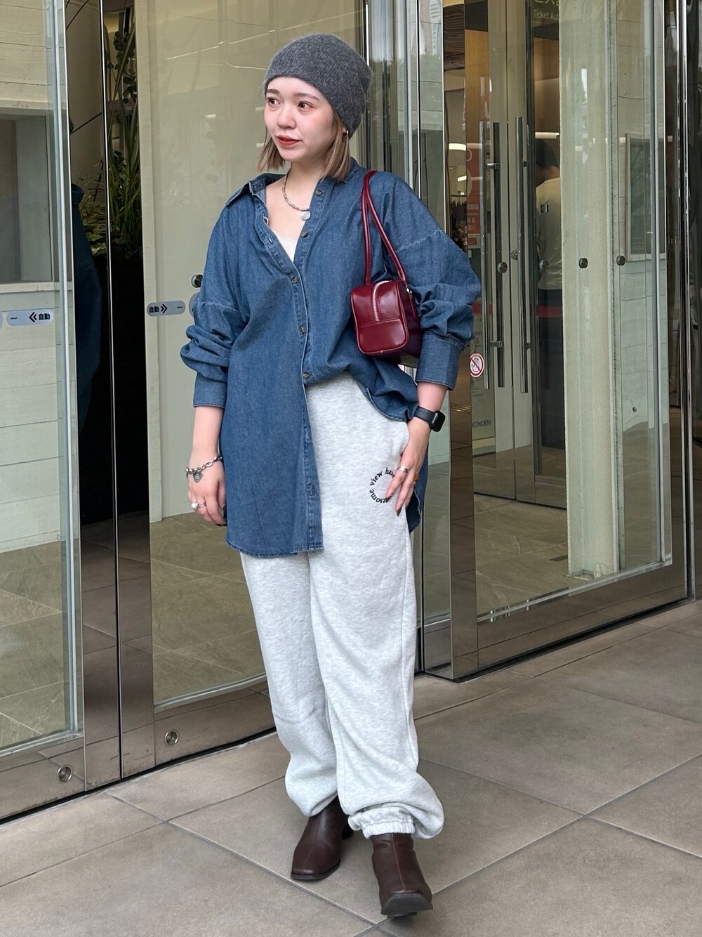 トップスはビックシルエットシャツを 着用しております! 生地がしっかりしているので 秋冬にも着れる厚みがあります! お尻がすっぽり隠れるくらいの ビックサイズなので カチッと印象にならずに普段のお出かけ用でも使いやすいアイテムです◎ パンツはスウェットパンツのライトグレーを着用しております! ルーズなサイジングですが 裾がキュッとしまっているので スニーカーだけじゃなくブーツなどで合わせると 今年らしく着ていただけます◎ 中は裏起毛なので気温が下がってくるこの時期に とてもおすすめです!
