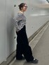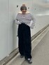 トップスはオフショルシアーロンTeeの mixを着用してます! 伸縮性があるので肩周りの窮屈感がなく着ていただけます◎ ボトムはフロッキーデニムの25inchを着用しております! 柔らかく履きやすい素材のため ストレスフリーでした! 丈感は154㎝で厚み(2〜3㎝)のある靴を履くと 乗っかってくれるくらいです!