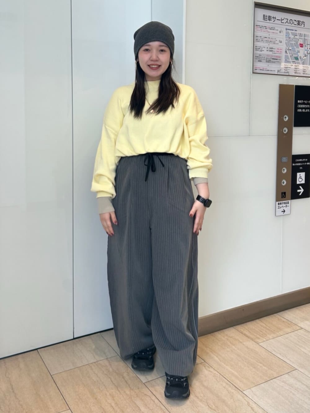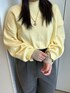 knit:コットン混ショートルーズニットのイエロー着用しております! 丈感が短めなのでインしなくても綺麗に着れます◎ 袖のバイカラーがポイントで可愛いです! pants:スラックスはSサイズを着用しております! スニーカーだと靴に乗っかる丈感で、 ブーツや厚底合わせだとフルレングスで 着ていただけます! 薄くストライプが入っているのもおすすめポイントです☆