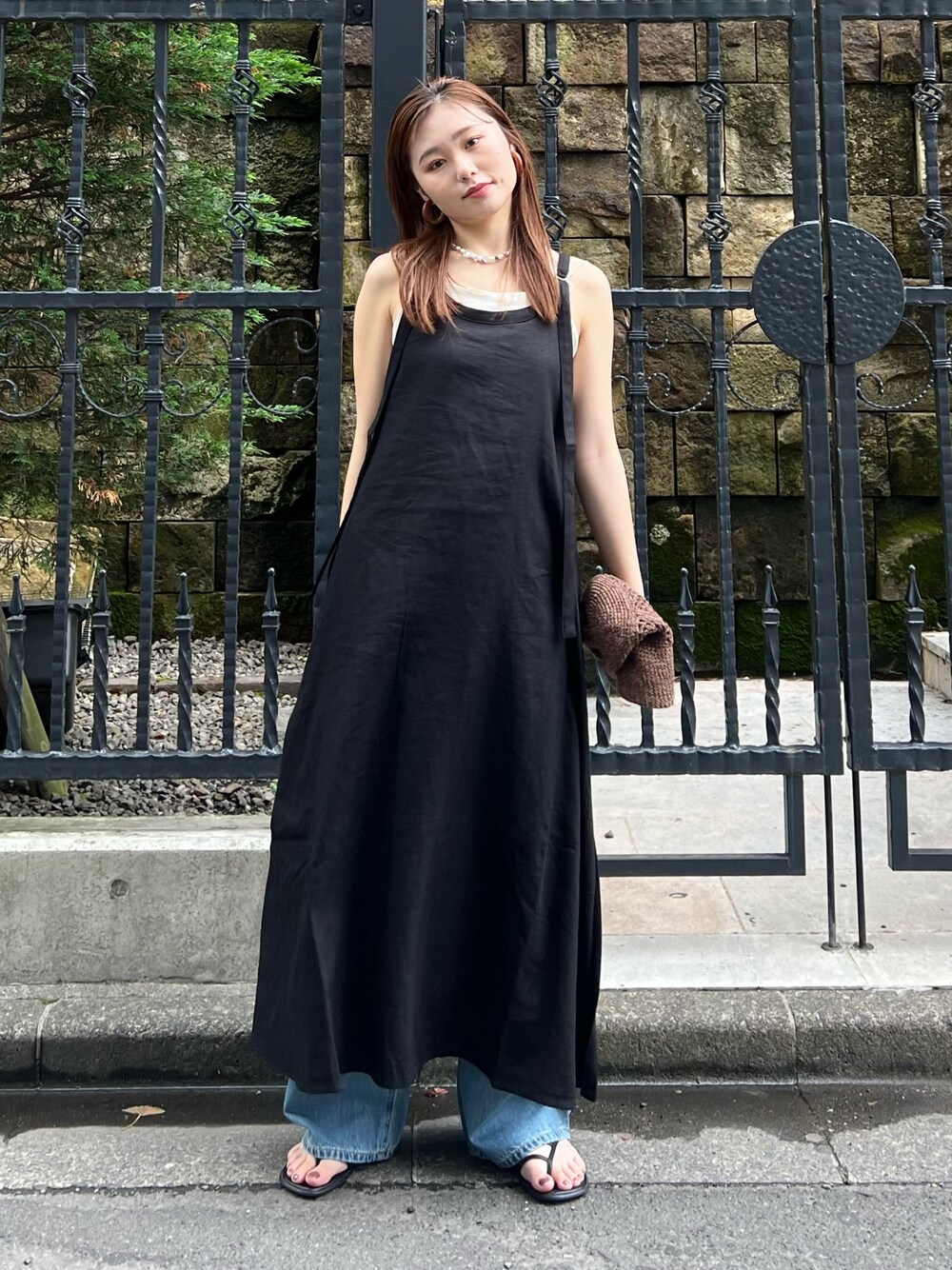 西村唯(Ungrid)のワンピース「リネン混ショルダーデザインキャミワンピース」を使ったコーディネート
