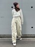 西村唯(Ungrid)のカーゴパンツ「ジップデザインミリタリーパンツ」を使ったコーディネート