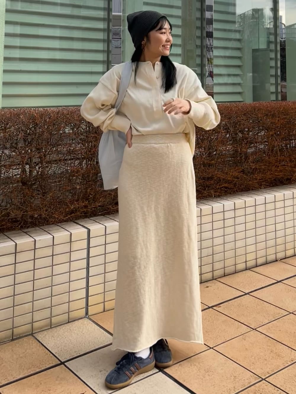 【帽子】 ungrid定番商品のニット帽♡ カジュアルからキレイめなスタイリングまで幅広くお召し頂けます! 【トップス】 厚手のテレコ素材を使ったトップス ヘルシーかつオシャレ見えするヘンリーネックデザインが今季のトレンド感あってとても可愛いですよ🤍 【スカート】 女性らしくヘルシーに着れるニットスカート♡ 160cmくるぶしやや隠れる丈感です! ウエストはゴム仕様なのでラフにお召し頂けます! 【バッグ】 ungrid定番のロゴが可愛いエコバッグ♡ 小さく折りたためて持ち運びもしやすく、容量もしっかりはあるのでエコバッグ使用や普段使いにも🙆♀️