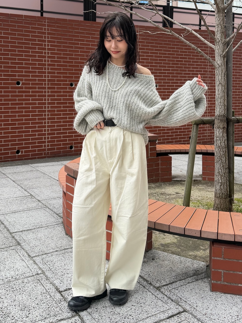西村唯(Ungrid)のチノパンツ「起毛コクーンチノパンツ」を使ったコーディネート
