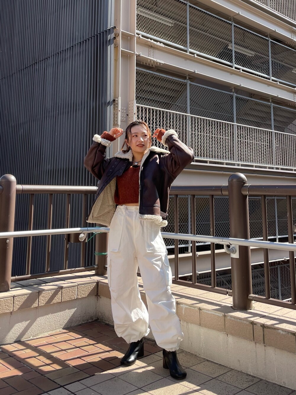 【ニット】 ショート丈のニットで、一枚でグッと大人っぽく女性らしく見せてくれるアイテム🫶 程よく肌見せして、上からアウターを羽織るのが今季はトレンドです💛 【ムートンボアブルゾン】 毎年大人気のムートンボアブルゾン! 暖かくて、ボリューム感も可愛い一枚😍 SとMサイズがあるので、好きなシルエットを選んでいただけます! 首元のベルトを締めると、雰囲気も変えられますよ🫶 【パンツ】 ウエスト部分と裾部分が絞れるので、程よくシルエットを調整できます! 大きめシルエットのスウェットやニット、タイトめなタートルニットとの相性が抜群ですよ💛