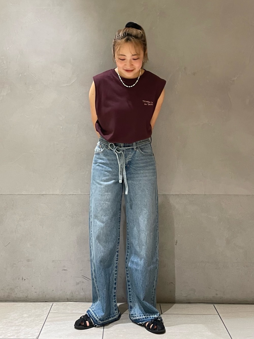 【トップス】 ロゴの配色が可愛いノースリーブのトップスです🩵 シンプルなロゴが大人可愛い一枚で、スカートやワンピなどにも合わせていただけますよ! 【デニム】 ウエストに紐がついているため、いろいろな結び方を楽しむことができ、雰囲気も変えていただけます✨ 程よいルーズ感があり、履き心地もいいストレートのデニムです☺️