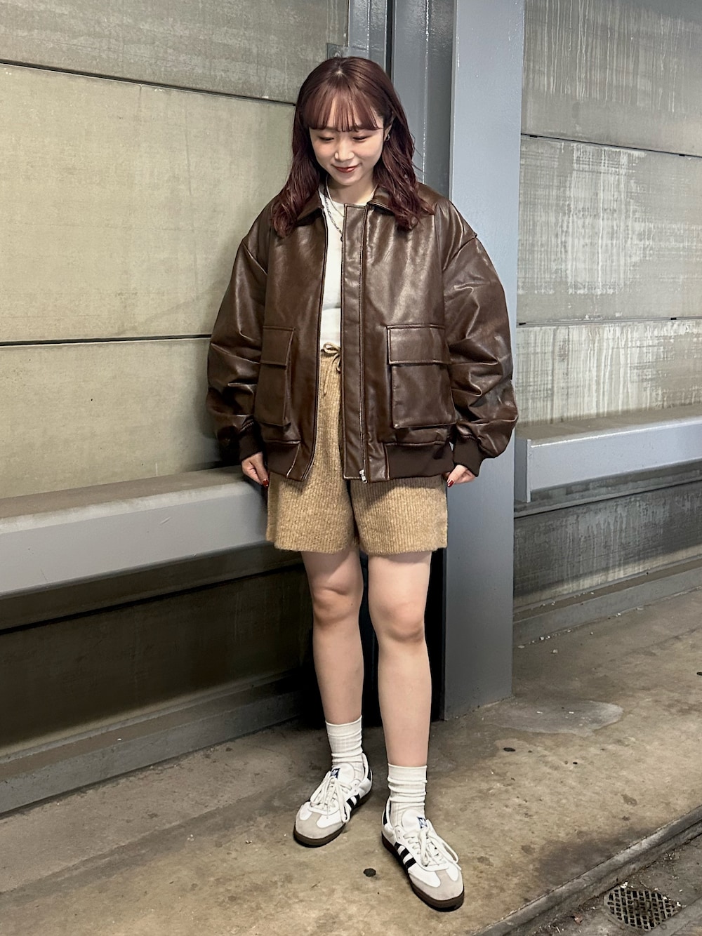 Instagram▷▶︎minami_kondo_ 【ブルゾン】 毎年大人気のレザーブルゾン!! 丸みのあるシルエットは女性らしく着ていただけます! 丈感は長めでオーバーサイズなので、トップスはボトムスにインして着るとブルゾンとのバランスが取れます!! ブラウンで柔らかい印象なので中にカラーを入れても○ 【ニットパンツ】 Ungridならではの丈感とカラー展開! 短すぎないので、太ももが気になる方でも着ていただきやすいと思います! スニーカーでカジュアルに合わせても可愛いですが、ロングブーツでキレイめに合わせるのもおすすめです!!