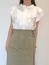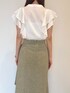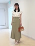 《トップス》 さらっと着やすいブラウスです! フリルのデザインが二の腕をカバーしてくれます。 甘すぎないフリルなので、着ていただきやすいです! 《スカート》 シルエットが綺麗に見えるスカートです! ボディラインを拾いすぎずに着られます◎ ウエストベルトで調節が可能です!