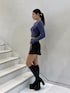【トップス】フロントに大きなロゴがデザインされているニットトップスです!タイトなシルエットですが伸縮性に優れていて着脱しやすいです◎ 【ボトムス】インナーパンツが付いているレザースカートです!後ろが長めになっていて安心して履いていただけます◎(164cm/XSサイズ着用) 【シューズ】着用しているブラックの素材はフェイクレザーになっています!ストレッチが効いていているのでスキニーをINしても履いていただけます✨(24cm/Mサイズ着用)