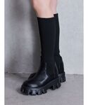 YUKI(GYDA)のブーツ「ニットドッキングボリュームソールブーツ」を使ったコーディネート