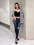 【アウター】毎年大人気のチェックシャツ👔今年はボタンのサイドにビジューが並んで付いているデザインになっております💎 【インナー】GYDA定番のリブベアビスチェに肩紐が付いて登場しました✨肩紐は取り外しできるようになっています◎ 【ボトムス】太もものサイドにスリットが入っているダメージスキニーデニム👖初めてハイウエストが発売されました✨おへそが隠れるくらいの股上です!(164cm/XSサイズ着用) 【シューズ】GDロゴのMOLDがポイントのミュールです👠MOLDとチェーンは取り外しできるので、シンプル使いも可能です◎(24cm/Lサイズ着用)