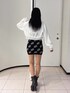 【アウター】お背中と胸元に刺繍でデザインされているブルゾンです!スポーティーなコーデにオススメです◎ 【ワンピース】GGロゴの総柄ミニワンピースです👗ラメ糸が入っています✨アメスリデザインなのでアウターを羽織ってもチラッと肌見せが出来ます◎ 【シューズ】レースアップのショートブーツです🥾パールのようなツヤ感がある素材で出来ています!足首周りにクッション性があるので負担なく履いていただけます!(24cm/Mサイズ)