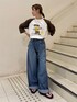 【トップス】 七分袖で、秋に大活躍です🍂 首はしっかり目に詰まっている為、細めのアクセとの相性が⭕️ 【デニム】 148cm/24inch 着用。 裾にかけて広がるシルエットで、150cm以下の方にはかなり文感が長めです。 2回ほどロールアップして着用しております! ロールアップしても、足長効果がキープされ続けるため、キレイめコーデも⭕️ また、ウエストが付属の紐で縛ることができるので、ウエスト問題も解決です!!