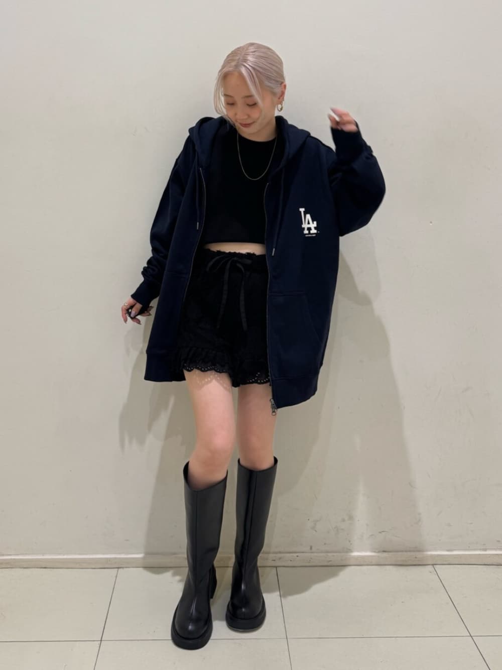 【パーカー】 大きめなサイズ感。 ダブルジップになっているので、下のファスナーを開けると抜け感が一気に出ます😊 148cmでヒップがすっぽり隠れる着丈です。 【Tee】 夏に大人気だった、フィットTから長袖verが登場!! 程よくフィットする感じが、インナー、メイン両方で使えるは万能すきるトップス🫶🏻 短丈デザインでなので、ハイウエストボトムスとの合わせがバランスが取りやすいです! (肌感を少し出すために、一回折って着用しています!) 【ボトムス】 148cmウエスト一回折りしています。 (丈感調節のため) ウエストは紐で縛れるため、折らなくても着用いただけます❣️ 程よいフリルのデザインで、ヒップを小さく見せてくれます! 【ブーツ】 22.5cm/Sサイズ着用。 軽いので長時間歩いても疲れにくいです! ファスナー等がないデザインなので、脱ぎ履きも楽にできます🙆🏻♀️