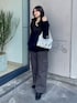 【トップス】 春の透かし編みニットで、Vネックがスッキリ見えします。 丈は157センチでヒップ隠れますが、サイドに深めのスリットが入っているので、オシャレ見えもして、胴体がすらっと見えます。 今時期はロンTやタートル合わせで、暖かくなったらキャミソールでヘルシーに合わせるのがおすすめです。 【インナー】 パット付きの紐が華奢なキャミソールで、 胸にしっかりフィットするので、安心して着れました!この季節一枚あると必ず使えるアイテムです🫶🏻 【パンツ】 私はゆったりと履きたかったので、157センチでMサイズ着用で2.3センチのヒールでギリギリすらない丈でした。 しっかりとした生地でハリ感があり、長く履いても型崩れしなさそうな感じです! ポケットのデザインが真っ直ぐ見た時にスッキリストレートで綺麗に見えるので、カジュアルすぎなくて履きやすいです。 ウエストの内側に絞りの紐がついてるので、骨格ウェーブさんでもぎゅっも絞って履けばウエスト綺麗に履けます。腰回りはゆったりで、股上は深すぎないので、楽に履けました! 【バッグ】 ギャザーのデザインが一目みて可愛いバッグ。 まちもあるので沢山入ります。コーデのアクセントに。 【シューズ】 スクエアのヒールで、足元の靴こそおしゃれに着こなすための大事なアイテムです!! ずるっとしたパンツに足元スクエアでくっとしめて履いていただくとおしゃれに見えます✨ スクエアなのでつま先も楽に履けますし、 サンダルなので何より脱ぎ履きが楽です! 普段23.5でMサイズでちょうど良かったです!