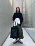 【トップス】 ギャザーデザインが可愛いショート丈トップス。トレーナーのような素材感が、ラフでありながらオシャレ感も兼ね備えている生地感になっているので、お手持ちのニットワンピースなどの上に合わせて雰囲気を変えるのも良しです◎ 【シャツ】 トラインアングル形のタックデザインが、可愛い構築的デザインが被らないモードなシャツ。ポリエステル100なので、扱いも楽ですしシャツなのにシワにもなりにくいので、週に何回も合わせることができるくらい着回し力も高いです💯バックスタイルもお尻を隠してくれるので安心! 【スカート】 こちらもシャツと同様、トライアングル形のタックデザインが入ったスカート。UN3D.の中では比較的丈が短めのお造りなので身長が小柄な方でも問題なく着ていただけるかと!ウエストはゴムのお造りなのでご飯もたくさん食べれます☺️ 腰周りは、少しフィット気味ですがおしりのラインは拾わない作りになっております! 【ブーツ】 ソールのデザインが可愛いサイドゴアブーツ。くるぶし位の丈なので、カラーソックスと合わせてチラ見せしても◎ 【バッグ】 ビッグポケットトートバッグが、マチありに進化して今期新登場!お荷物多めの方でも安心して使えるくらい安定感のある形に変わったので、お仕事でお弁当持つ方にも安心です✨