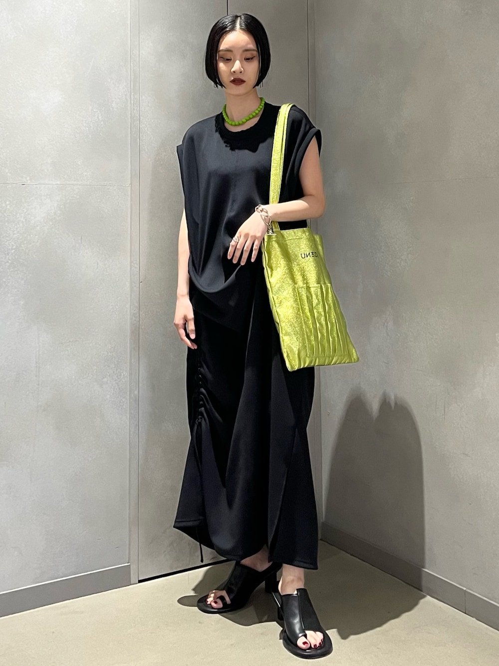 【ワンピース】 ゆるっと楽ちんカジュアルなのに、モード見えするワンピース。 体のラインを全く拾わないシルエットなので、体型気にせず色んな方に着ていただけます!袖部分が、かなり開いているので中のインナーでカラー遊びしても可愛いです♥️ 【サンダル】 クッションがしっかりある、ヒールサンダル。丸みを帯びたワイドソールが、コーディネートをグッと締めてくれます。サンダル自体もとても軽く、足運び楽ちんです! 【ネックレス】 ちょうどいいサイズ感と、マットな質感がデイリーにもフォーマルにも使える万能ネックレス。マグネットで着脱が簡単にできるのでズボラさんにも安心! 【バッグ】 程よいラメ感がコーデの差し色になるトートバッグ。 A4サイズのものがちょうど入るサイズ感になってます!ショルダーは長めに作られているので、斜め掛けでの使用や、冬場に厚手のアウターを着ても持ちにくい心配なしです!