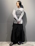 【トップス】 ニットビスチェがドッキングされた、1枚でオシャレ見えするドッキングシャツトップス。 ウエスト部分はゴムが入っており、見た目よりも伸縮性があるので、着心地は◎! カジュアルにもキレイめにも合わせやすく、夏以外のシーズンに着ていただけるアイテムです。 【スカート】 今季デザインのアーチポケットを取り入れた、ややマーメイドなシルエットのスカート。 スポーティーなイメージを彷彿とさせる生地感ですが、シルエットが女性らしいので、ブーツやキレイめなニットに合わせるのもオススメです! 【シューズ】 SSのシューズは、エッジの効いたスクエアトゥのデザインでしたが、AWは少し女性らしさを感じるぷくっとしたラウンドトゥに。見た目の重厚感に対し、しっかり軽くて履きやすいブーツとなっています! 太めヒールなので、歩きやすさも◎